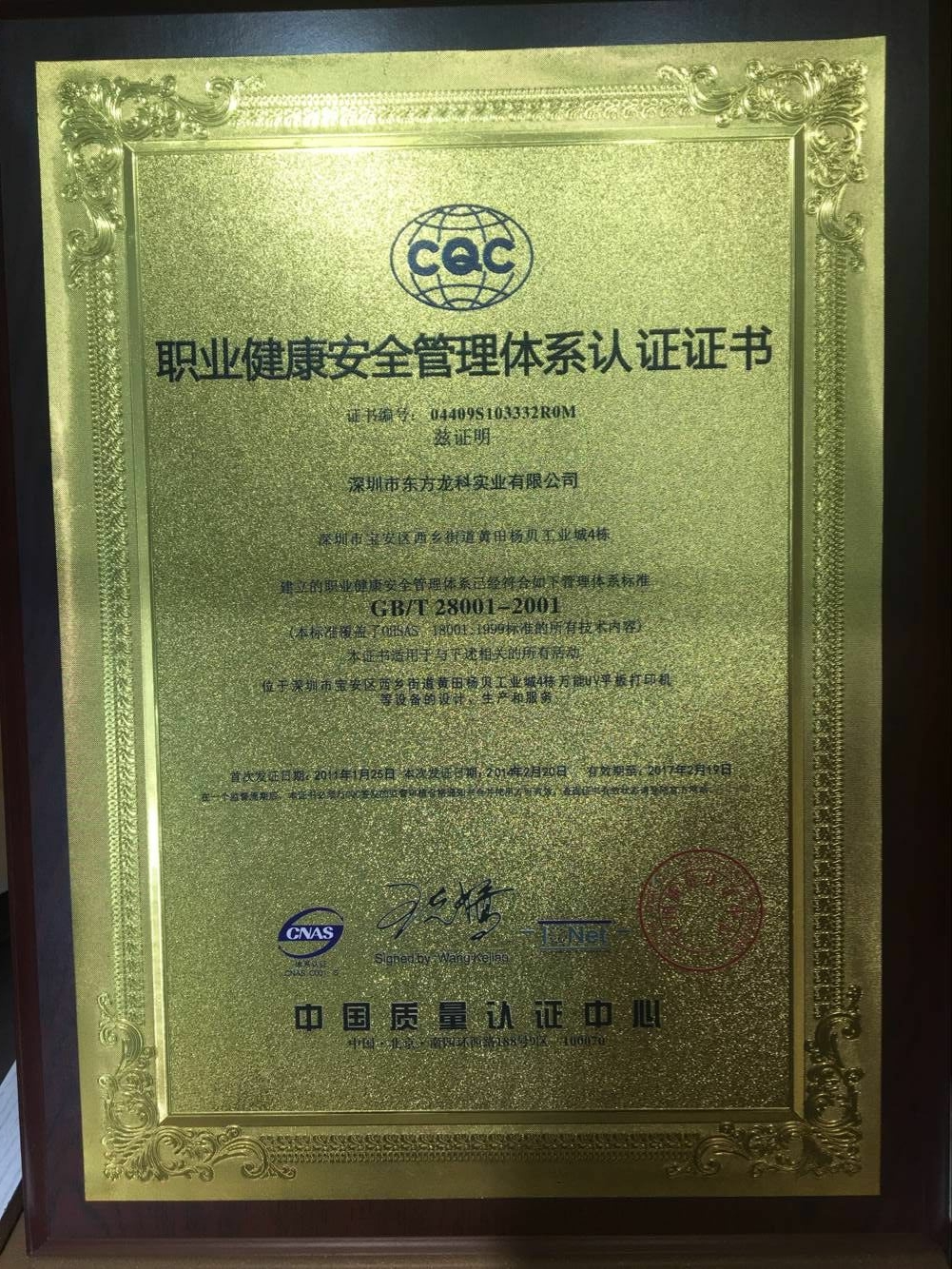 顧客滿意證書